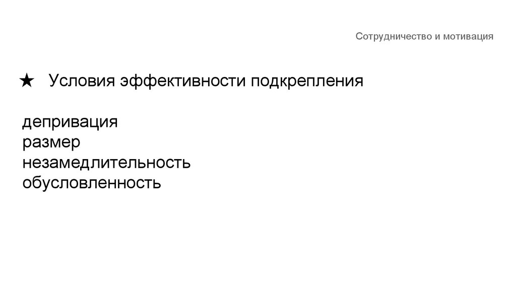 Сотрудничество и мотивация★ Условия эффективности подкрепления