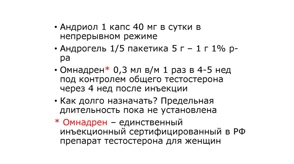 • Андриол 1 капс 40 мг в сутки внепрерывном режиме