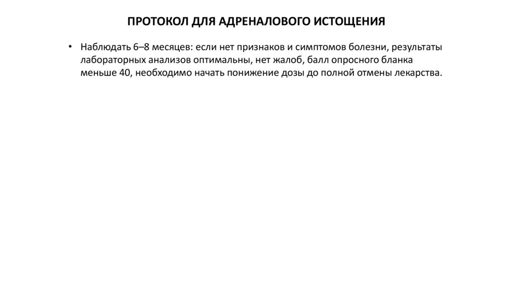 ПРОТОКОЛ ДЛЯ АДРЕНАЛОВОГО ИСТОЩЕНИЯ• Наблюдать 6–8 месяцев: если нет признаков и симптомов болезни, результаты