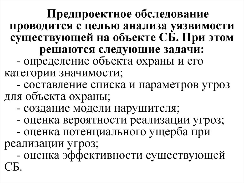 Предпроектное обследованиепроводится с целью анализа уязвимости