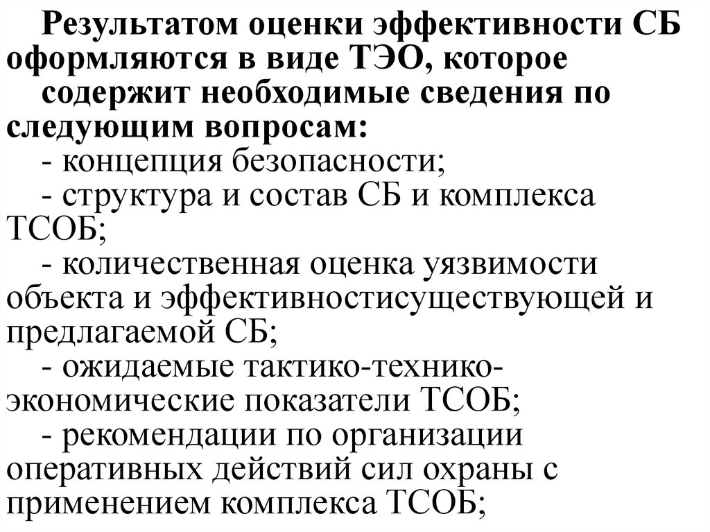 Результатом оценки эффективности СБоформляются в виде ТЭО, которое