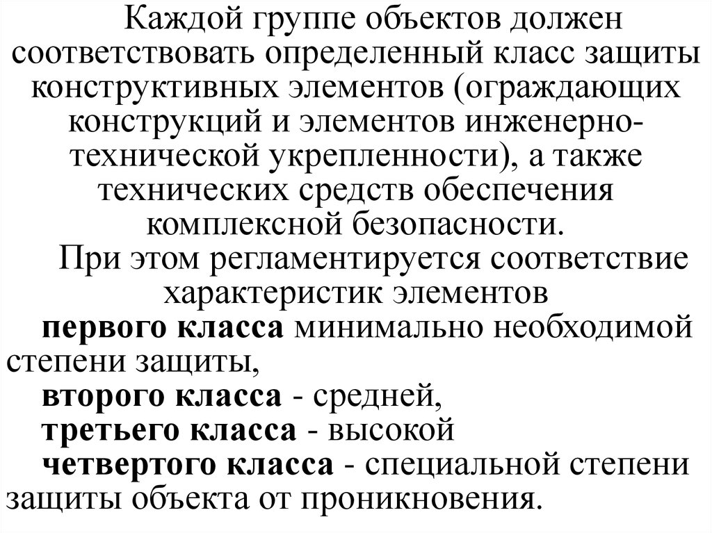 Каждой группе объектов долженсоответствовать определенный класс защиты