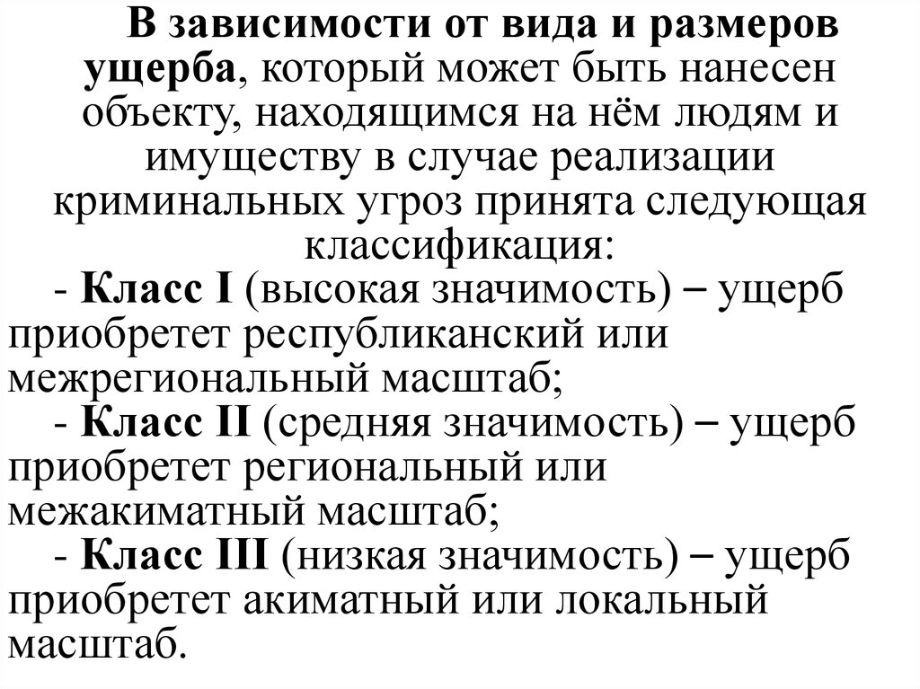 В зависимости от вида и размеровущерба, который может быть нанесен