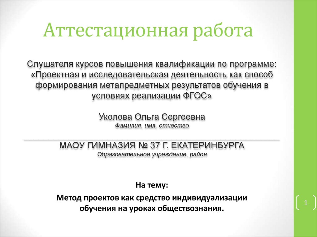 Аттестационная работа: Метод проектов как средство индивидуализации обучения на уроках обществознания