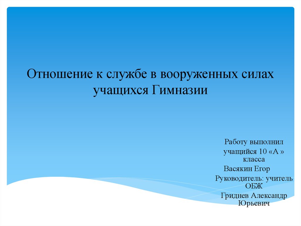 1. Отношение к службе в вооруженных силах учащихся Гимназии