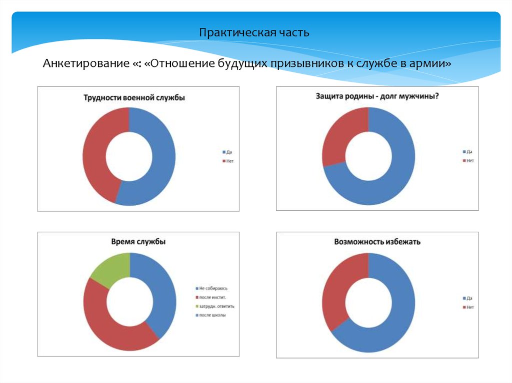 Практическая частьАнкетирование «: «Отношение будущих призывников к службе в армии»