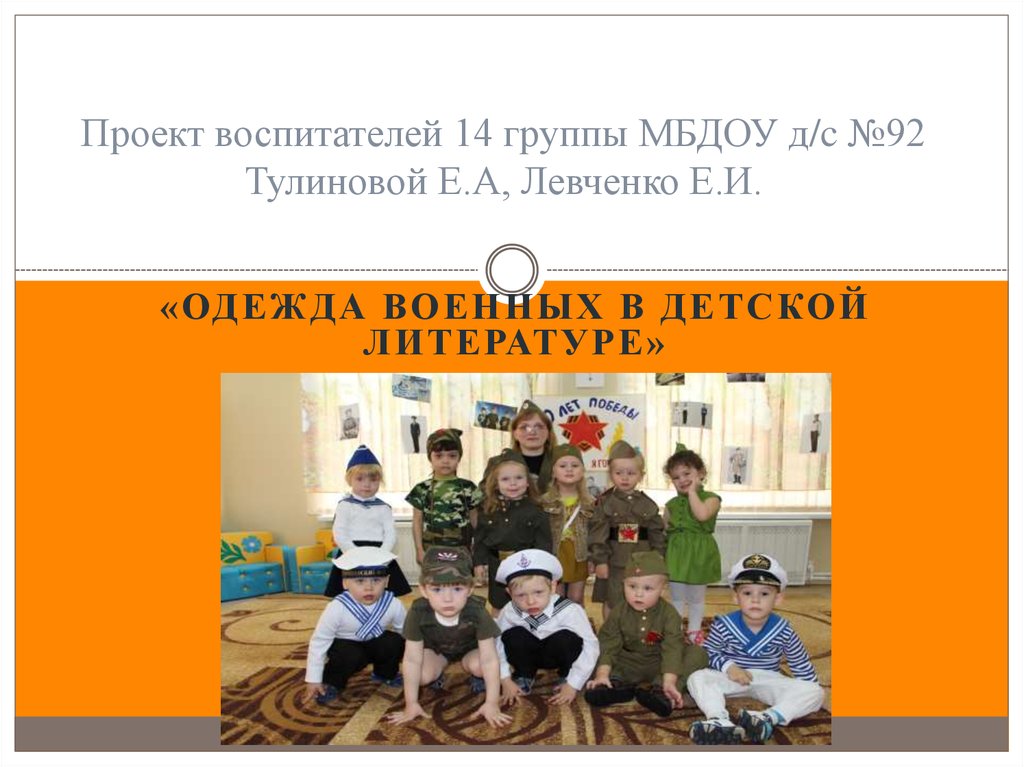 1. Проект воспитателей 14 группы МБДОУ д/c №92 Тулиновой Е.А, Левченко Е.И.