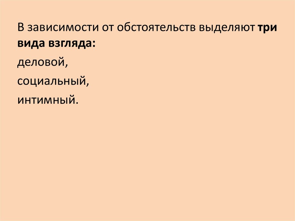 В зависимости от обстоятельств выделяют тривида взгляда: