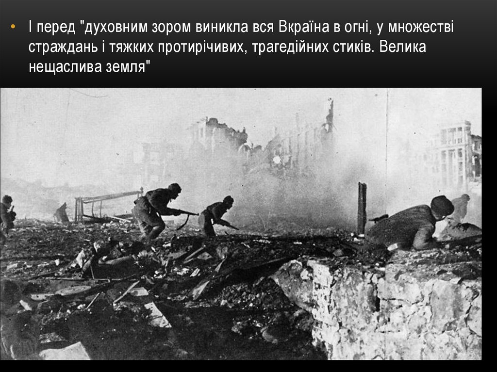 • І перед "духовним зором виникла вся Вкраїна в огні, у множествістраждань і тяжких протирічивих, трагедійних стиків. Велика
