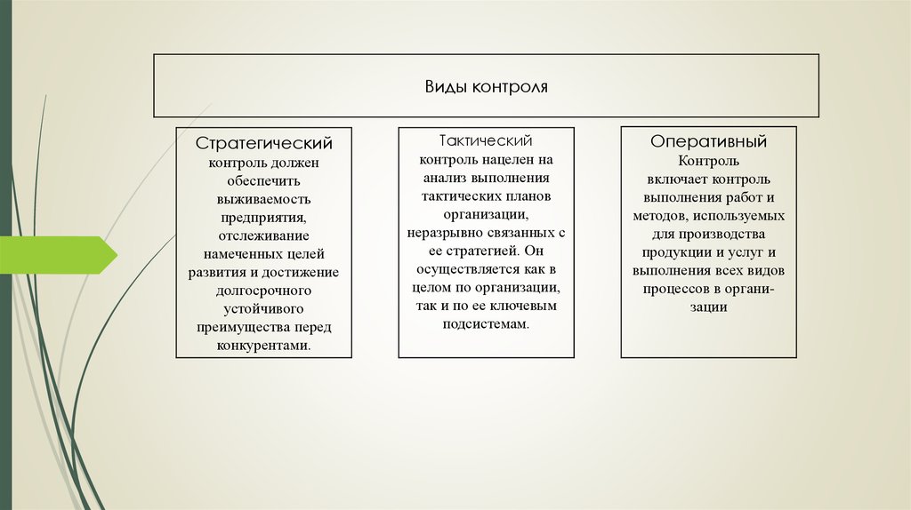 Контроль – это, прежде всего управленческая концепция, которая охватывает всесферы деятельности предприятия: финансы и учёт, менеджмент и маркетинг,