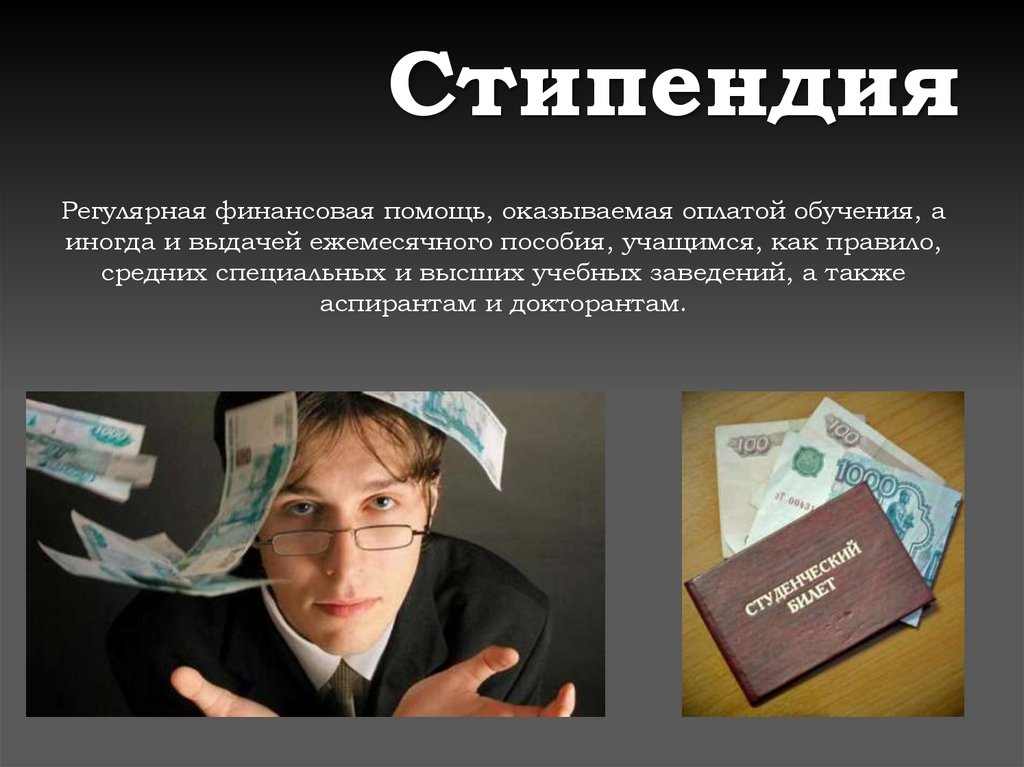 СтипендияРегулярная финансовая помощь, оказываемая оплатой обучения, а