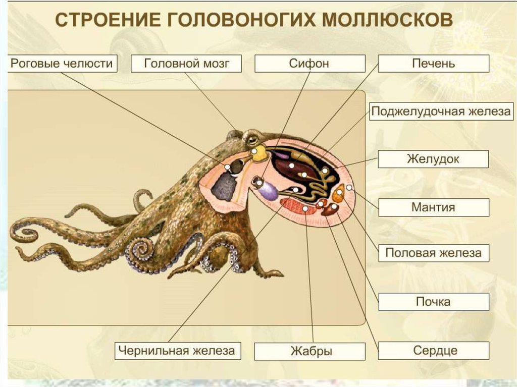 • Головоногие — в большинстве своёмхищные морские животные, свободно