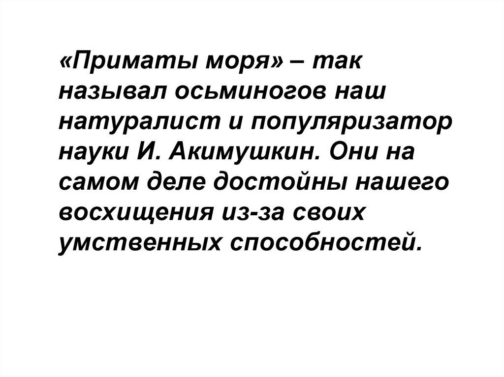 • Осьминоги – очень умные моллюски, ониспособны различать формы различных
