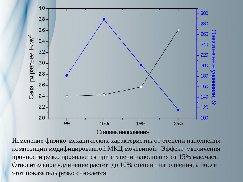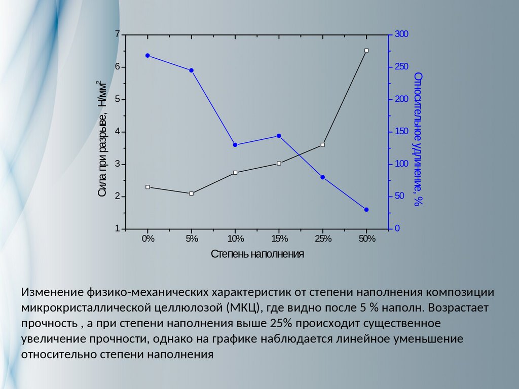 микрокристаллической целлюлозой (МКЦ), где видно после 5 % наполн. Возрастает