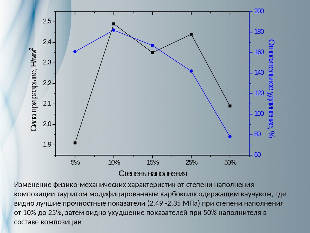 прочности резко проявляется при степени наполнения от 15% мас.част.