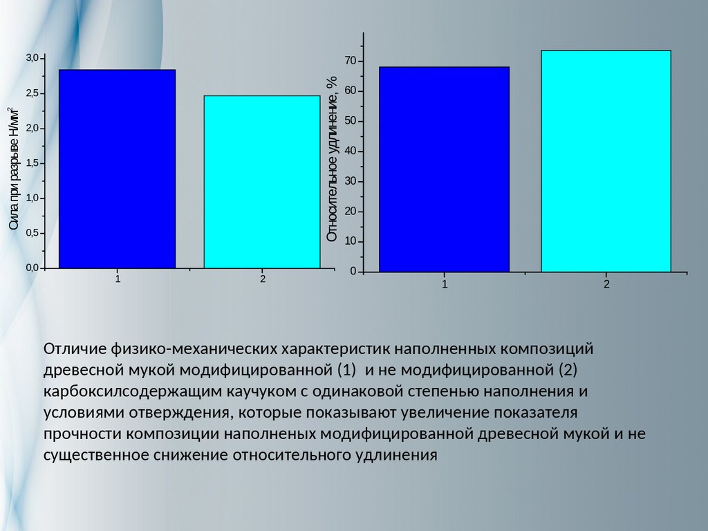 древесной мукой модифицированной (1) и не модифицированной (2)