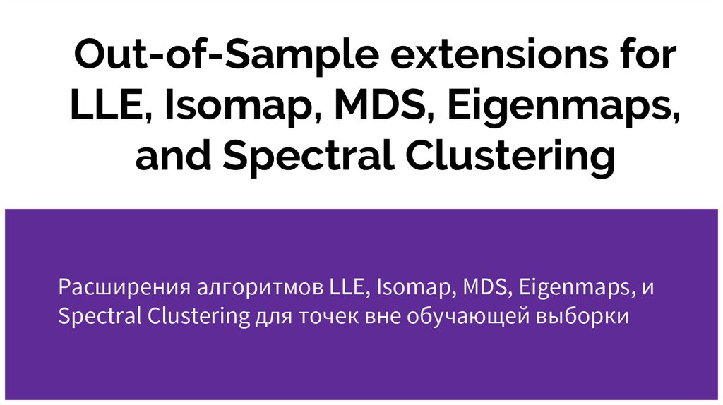 Расширения алгоритмов LLE, Isomap, MDS, Eigenmaps, и Spectral Clustering для точек вне обучающей выборки
