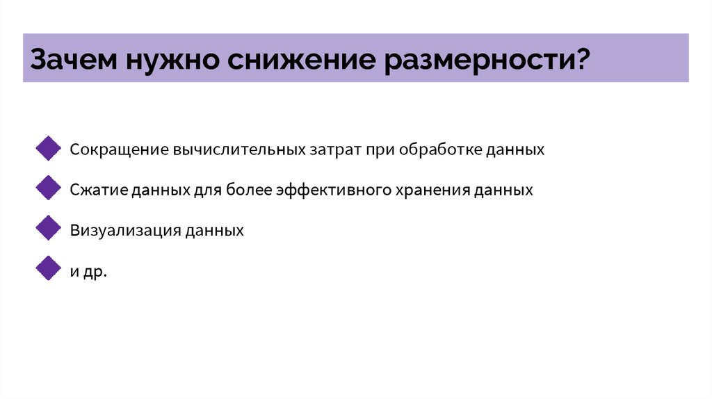 Зачем нужно снижение размерности?Сокращение вычислительных затрат при обработке данных