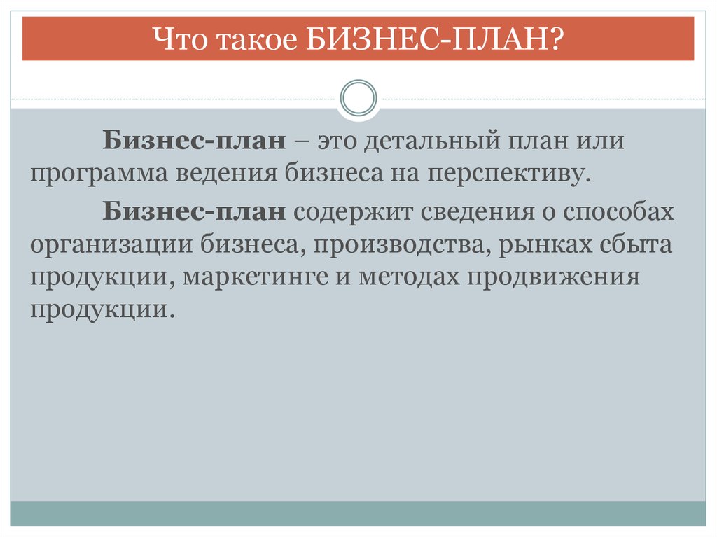 Что такое БИЗНЕС-ПЛАН?Бизнес-план – это детальный план или