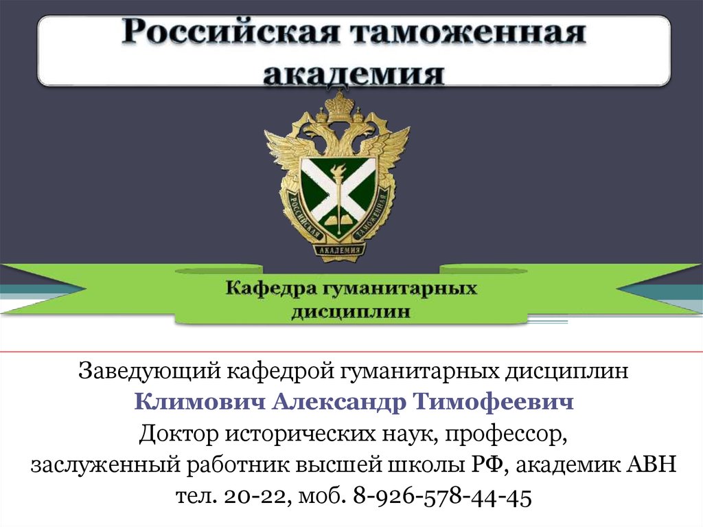 Заведующий кафедрой гуманитарных дисциплинКлимович Александр Тимофеевич