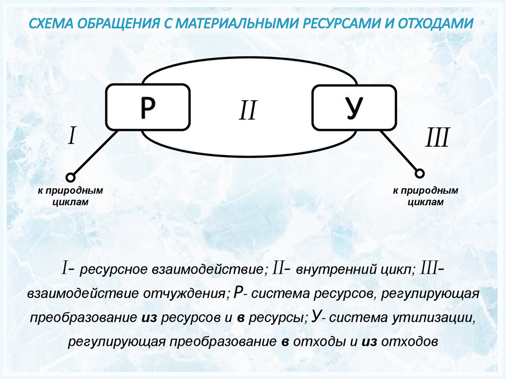 преобразование из ресурсов и в ресурсы; У- система утилизации,