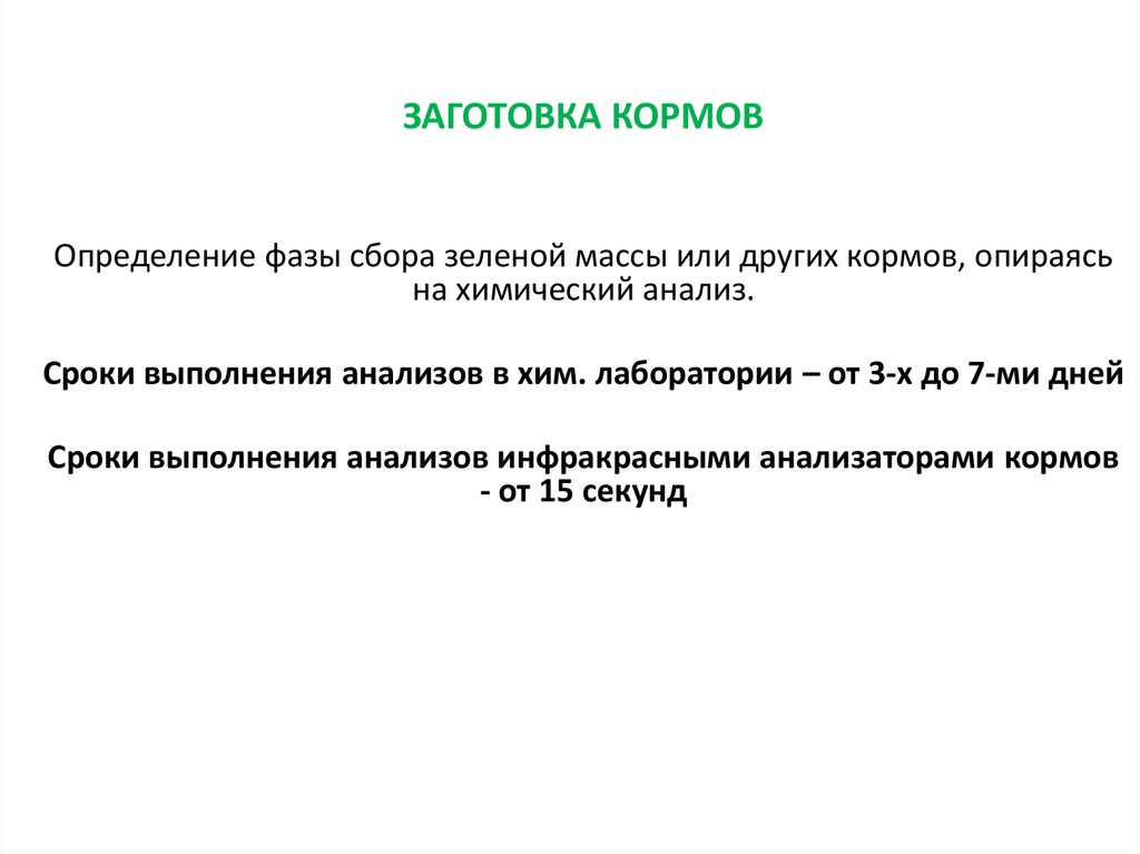 Сроки выполнения анализов инфракрасными анализаторами кормов