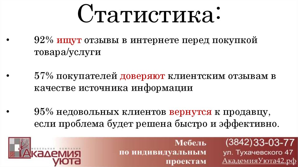Статистика:92% ищут отзывы в интернете перед покупкой