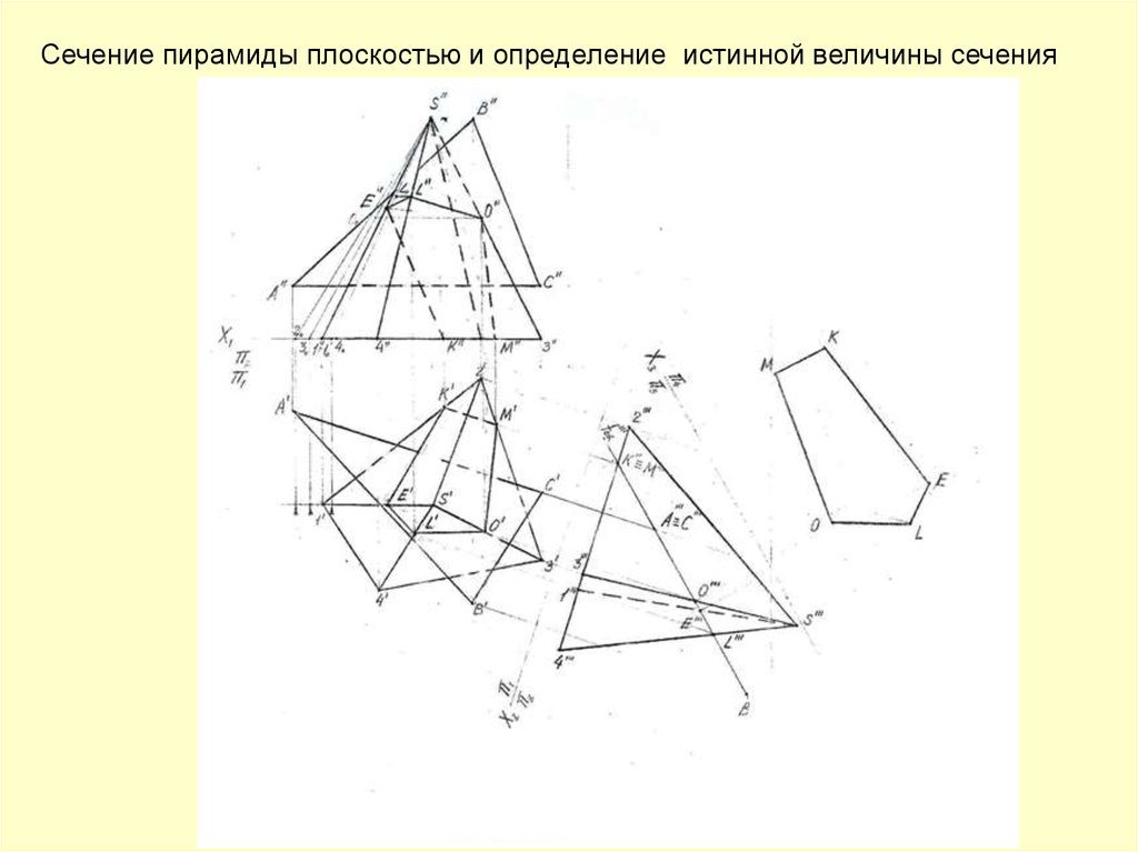 Сечение пирамиды плоскостью и определение истинной величины сечения17.