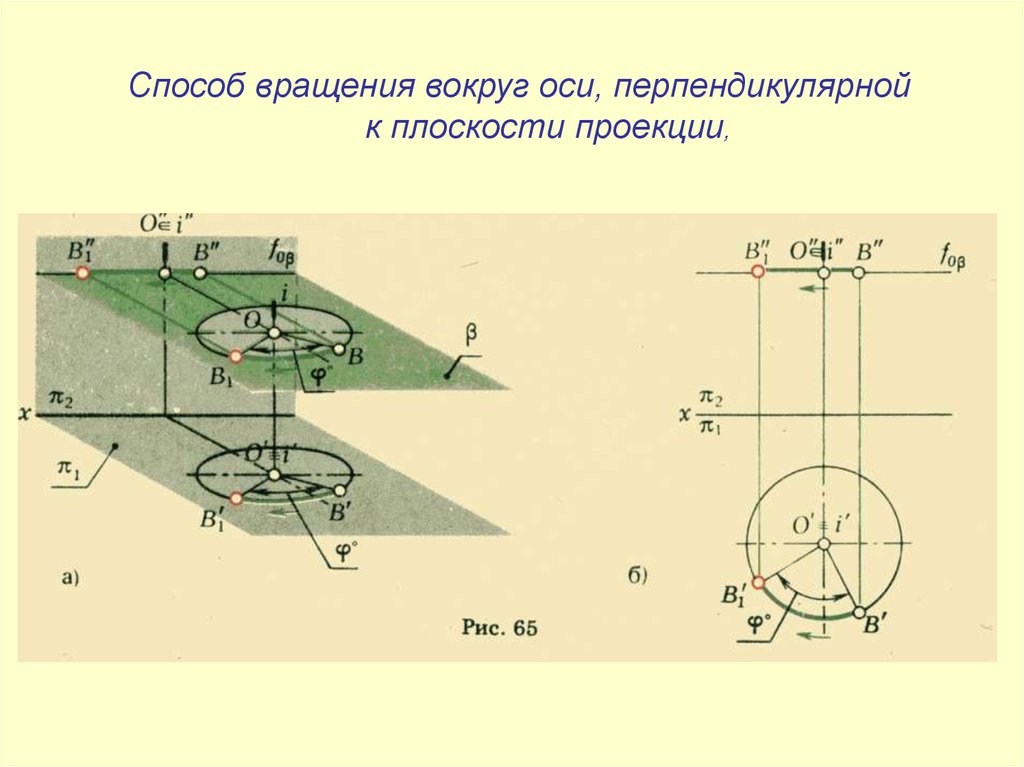 Способ вращения вокруг оси, перпендикулярнойк плоскости проекции,