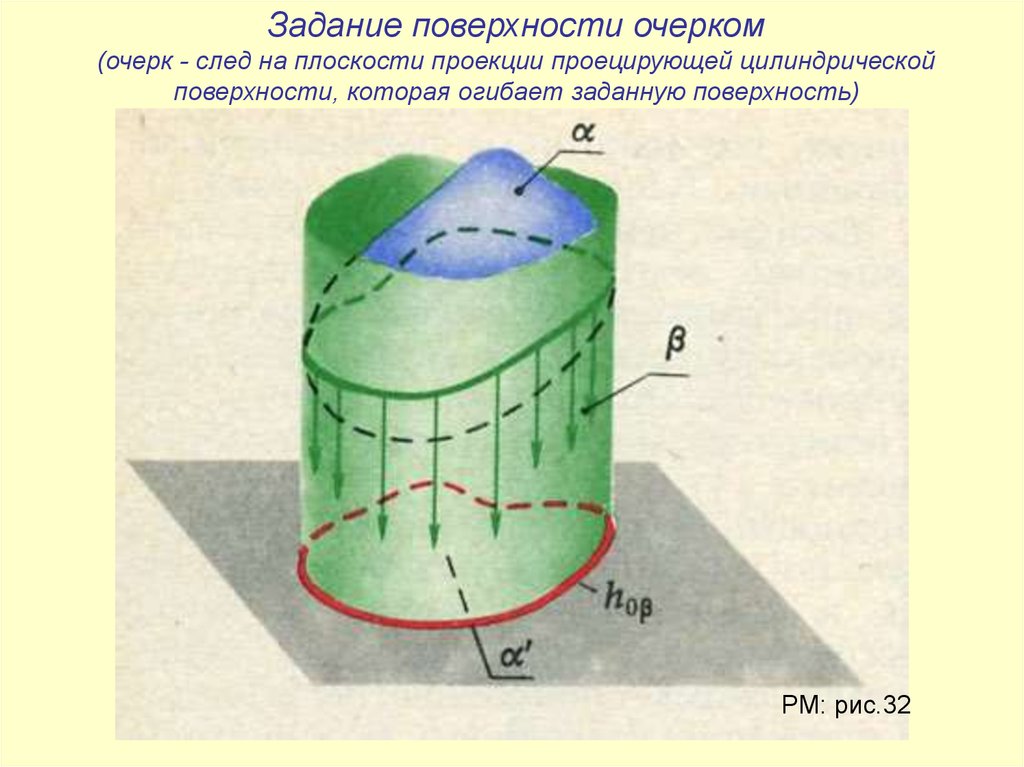 Задание поверхности очерком(очерк - след на плоскости проекции проецирующей цилиндрической