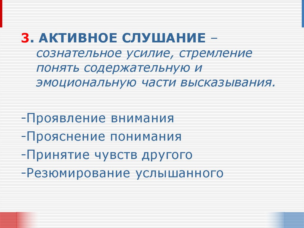 3. АКТИВНОЕ СЛУШАНИЕ –сознательное усилие, стремление