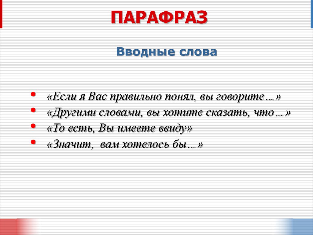 ПАРАФРАЗВводные слова
