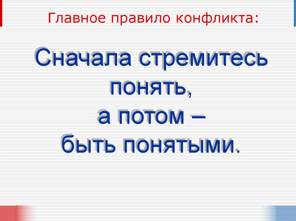 Главное правило конфликта:Сначала стремитесь