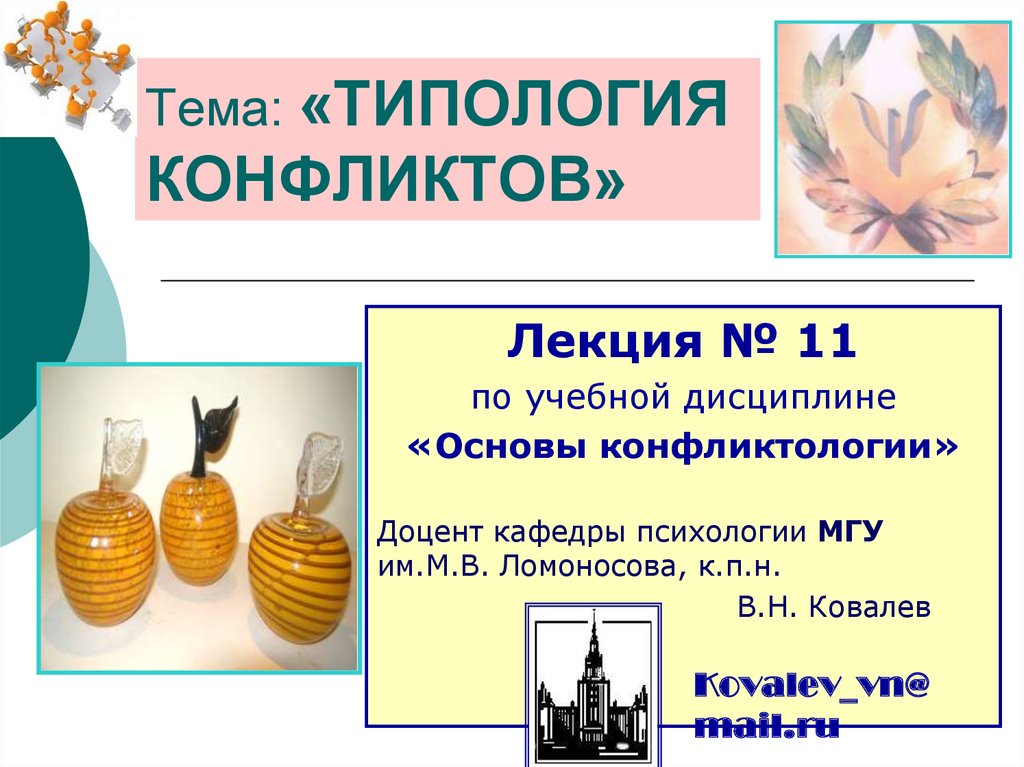 1. Тема: «ТИПОЛОГИЯ КОНФЛИКТОВ»
