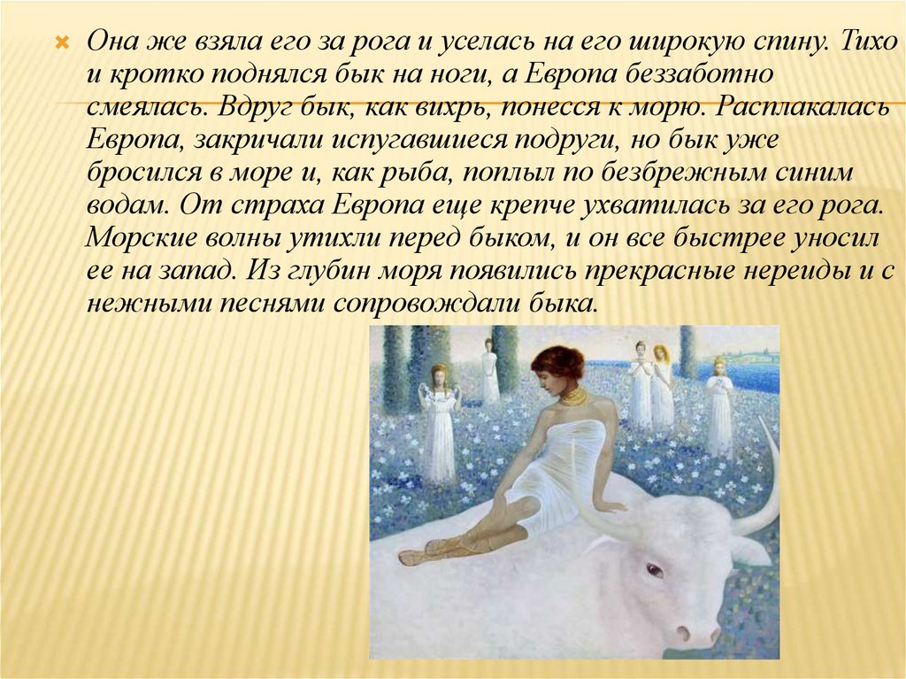 Европа, закричали испугавшиеся подруги, но бык уже