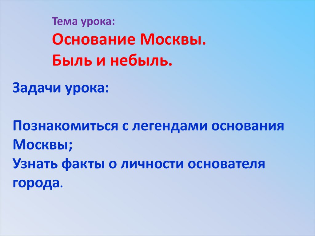 Тема урока:Основание Москвы.