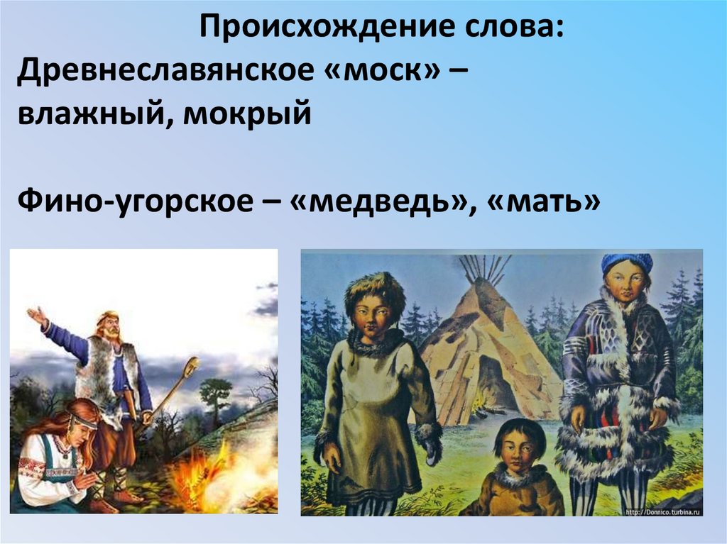 Происхождение слова:Древнеславянское «моск» –