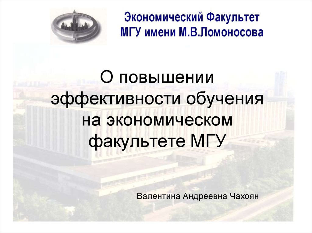1. О повышении эффективности обучения на экономическом факультете МГУ