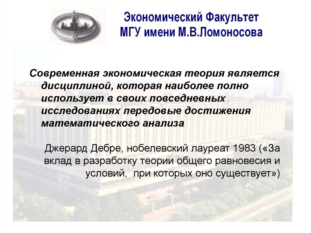 Все курсы, читаемые на экономическом факультете должнывключать экономико-математические модели и методы,