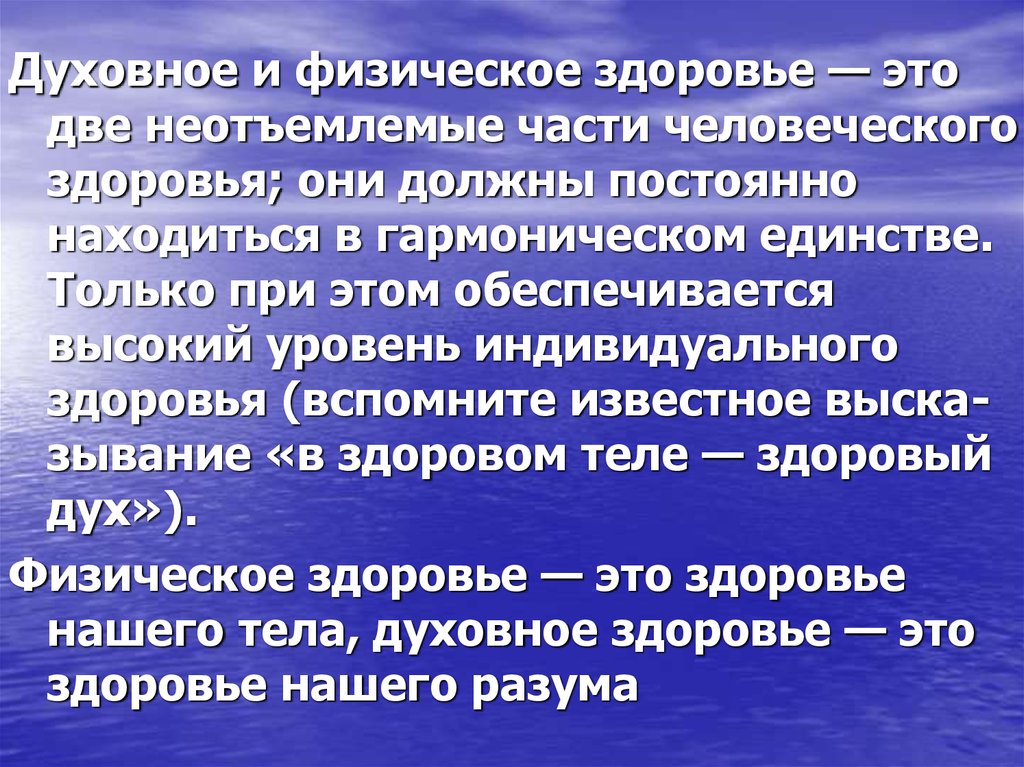 Духовное и физическое здоровье — этодве неотъемлемые части человеческого