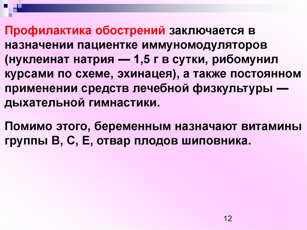 Профилактика обострений заключается вназначении пациентке иммуномодуляторов