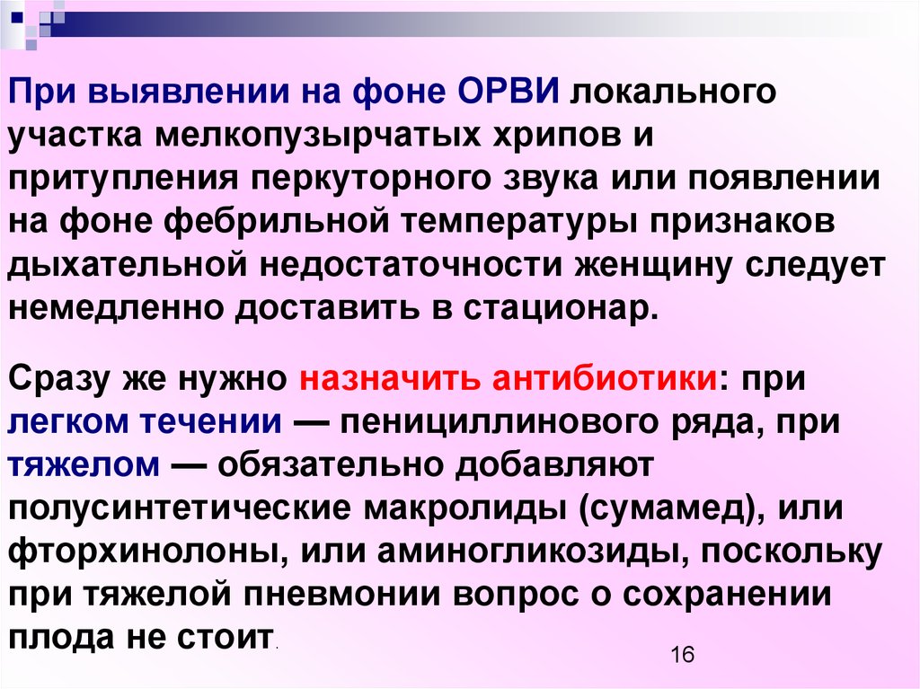 Лечение острой пневмонии у беременных
