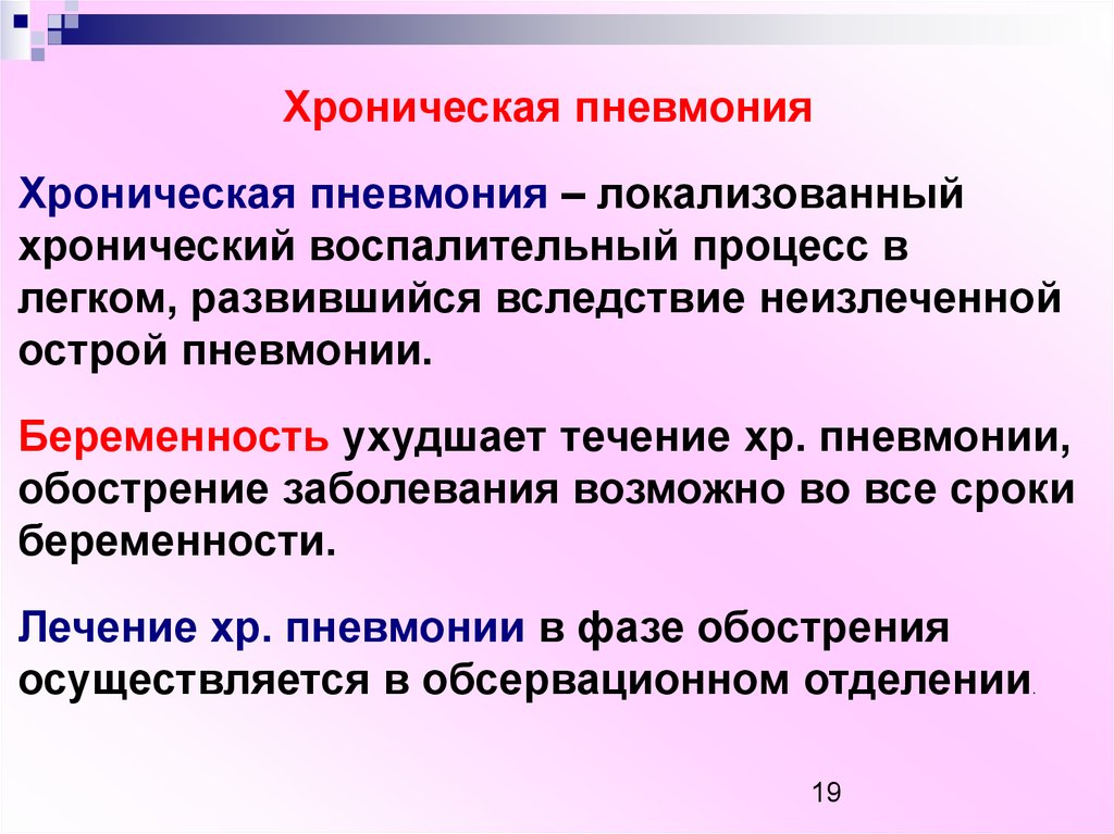 Беременность ухудшает течение хр. пневмонии,