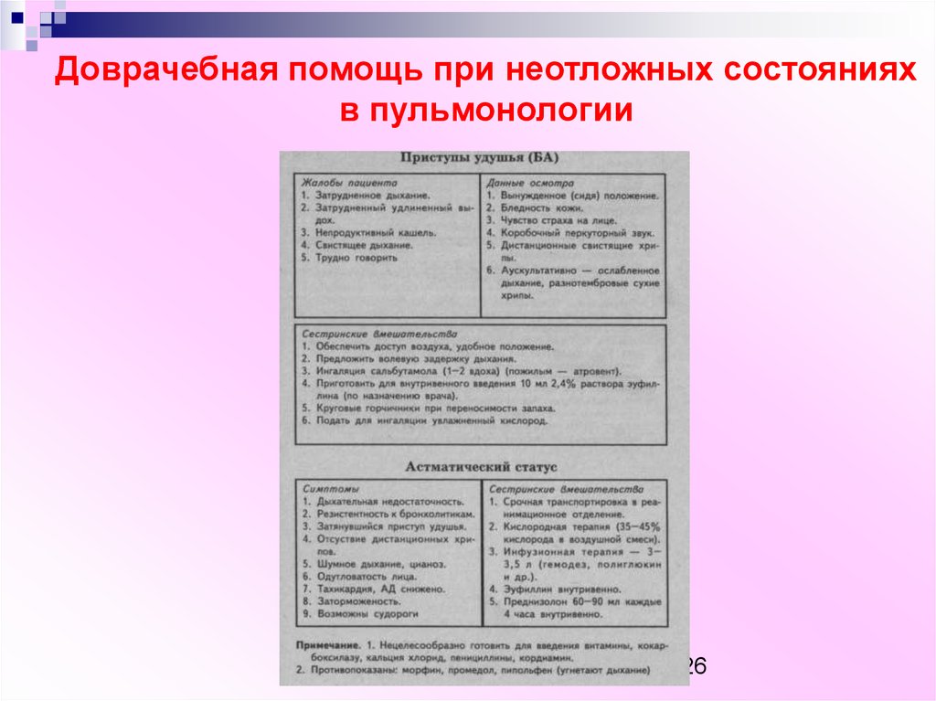 Доврачебная помощь при неотложных состоянияхв пульмонологии