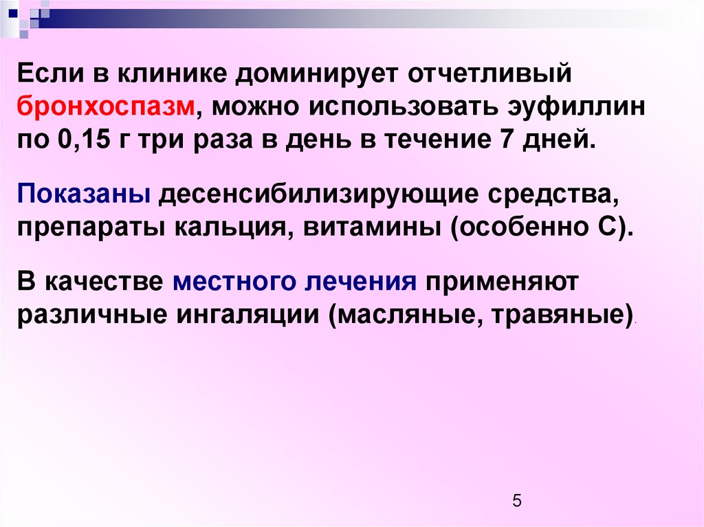 Если в клинике доминирует отчетливыйбронхоспазм, можно использовать эуфиллин