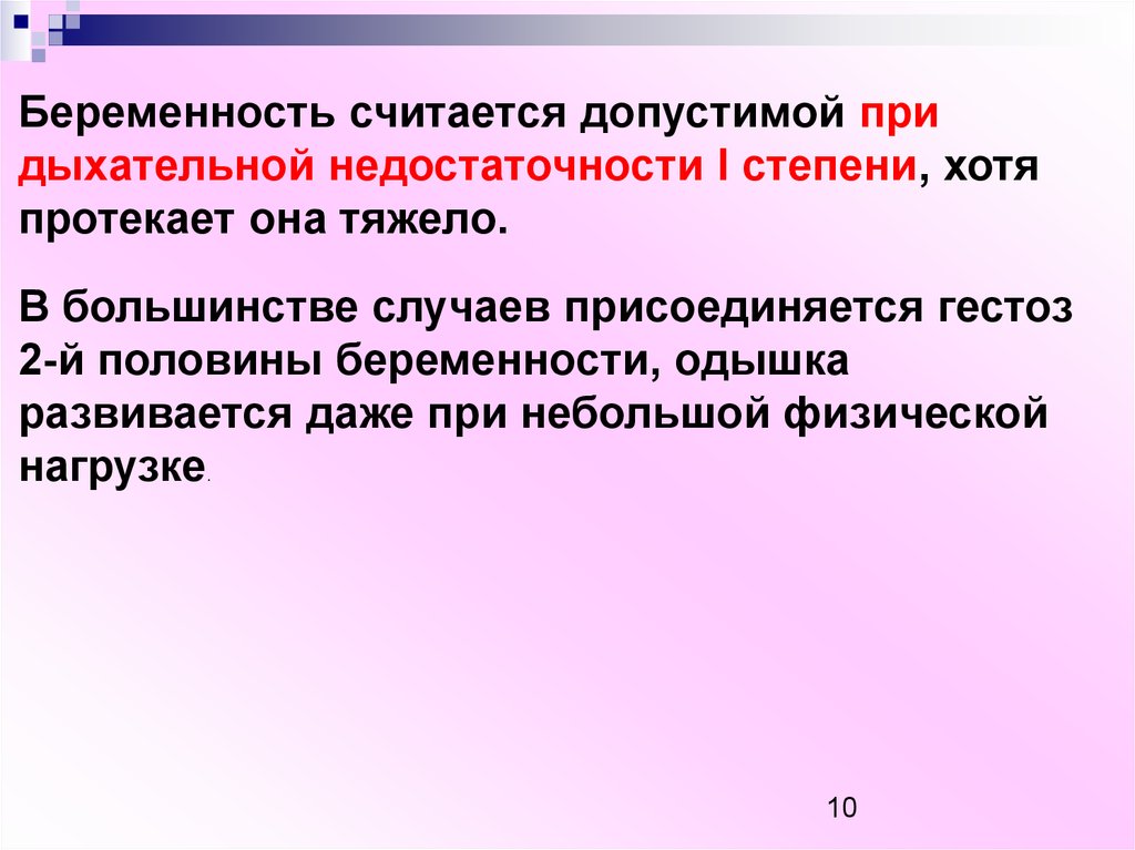 Беременность считается допустимой придыхательной недостаточности I степени, хотя