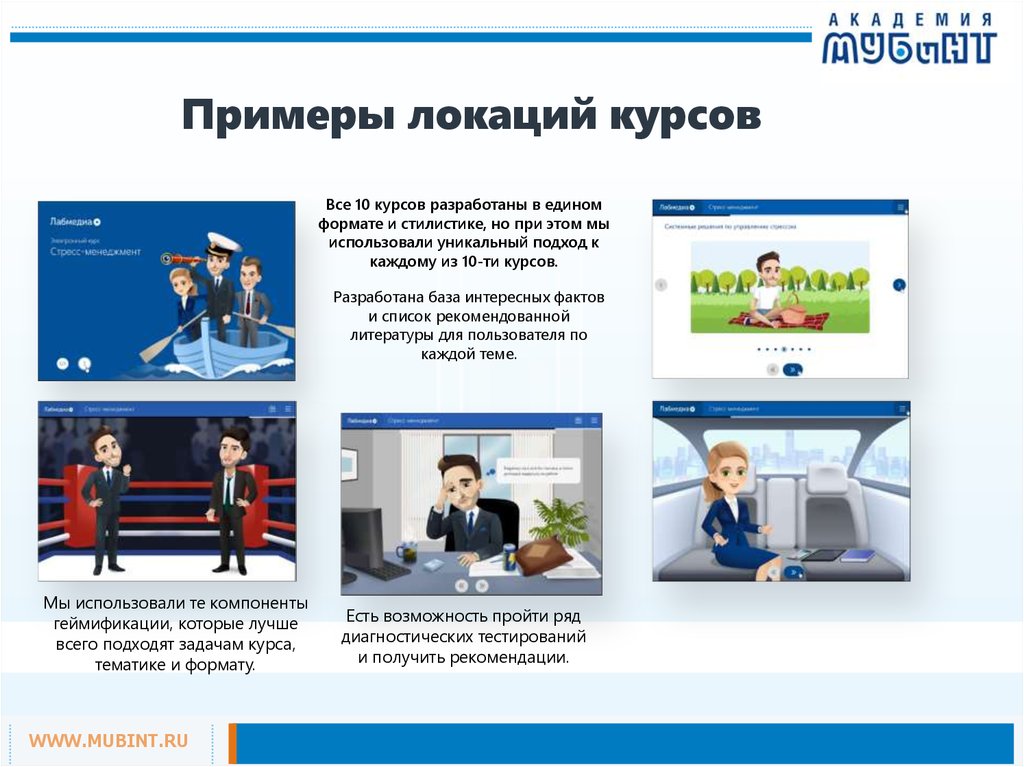 Примеры локаций курсовВсе 10 курсов разработаны в едином