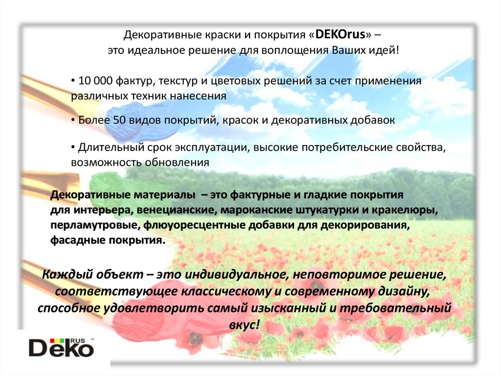 Декоративные краски и покрытия «DEKOrus» –это идеальное решение для воплощения Ваших идей!
