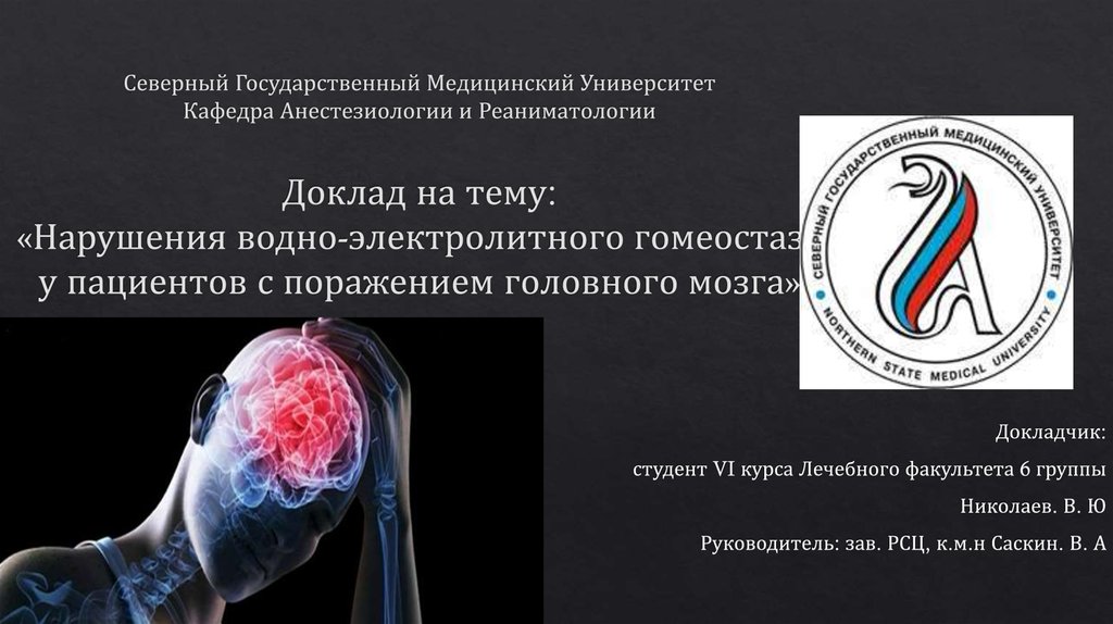 1. Северный Государственный Медицинский Университет Кафедра Анестезиологии и Реаниматологии Доклад на тему: «Нарушения