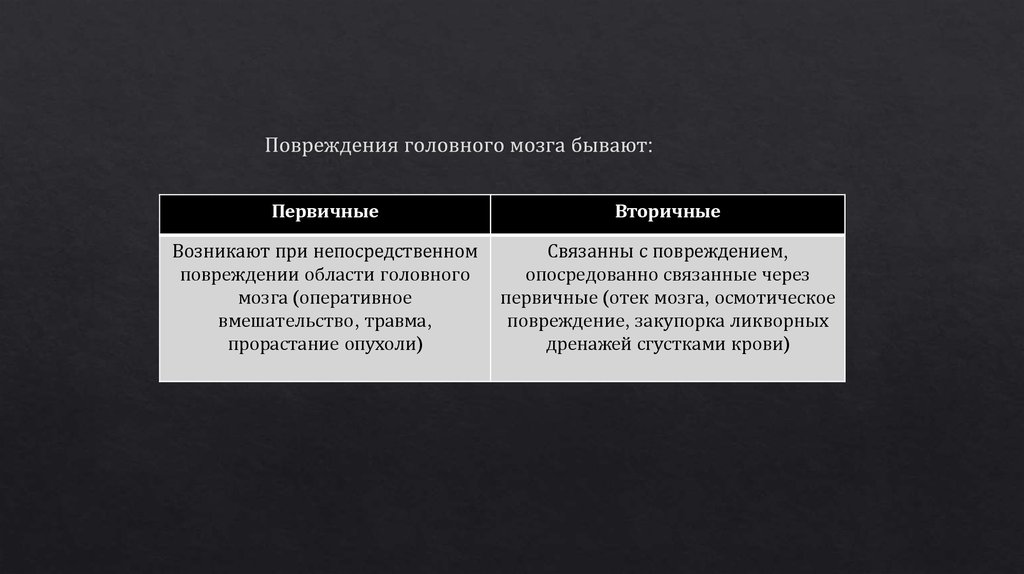первичные (отек мозга, осмотическое